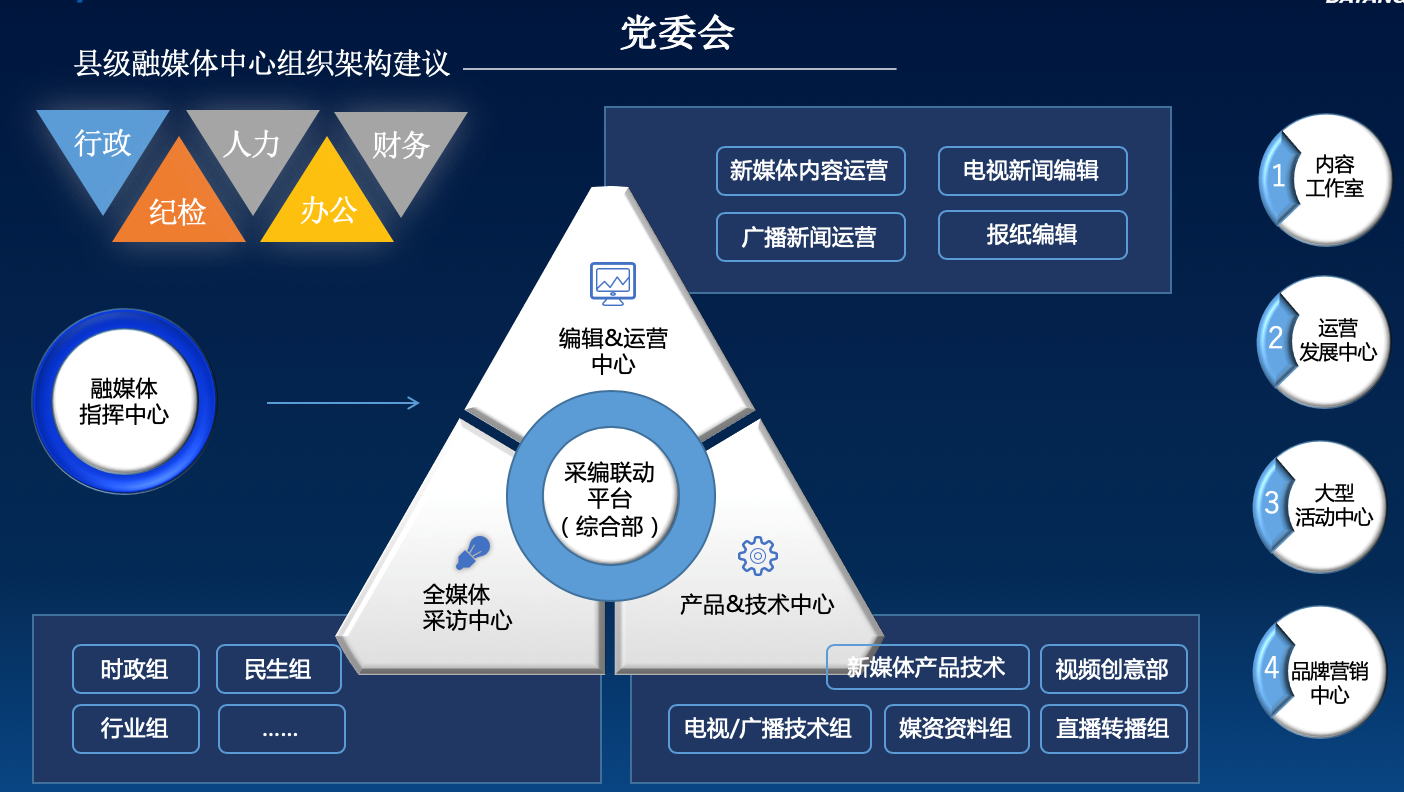 依托飞速发展的网络化趋势,采用广播级的技术工具,融合多平台的全媒体资源。“融媒体”是充分利用媒介载体,把广播、电视、报纸、网络等既有共同点,又存在互补性的不同媒体,在人力、内容、宣传等方面进行全面整合,实现“资源通融、内容兼融、宣传互融、利益共融”的新型媒体。把广播、电视、互联网的优势互为整合,互为