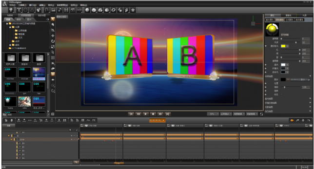 图文制作软件Designer DAURIC-Designer是一个强大的图形创作工具,可以满足所有设计需求。它可以轻松地创建一个三维空间,通过摄像机、灯光和物件的关键帧创作,得到一个复杂的三维动画。除了能提供基于三维空间的丰富效果以外,通过DAURIC-Designer独有的三维空间+二维平面层的设计,还可以快速制作唱词、跑马、标题条等传统字幕场景。