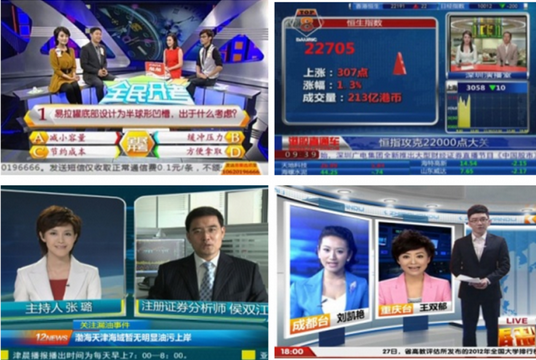 主持人控制 系统提供了多种主持人控制工具,包括触摸屏、iPad、红外遥控等,通过iPad控制工具,主持人可以更加自如得掌握节目的节奏,实现大屏、虚拟等包装内容与主持人口播的实时呼应;基于触控屏的控制工具,主持人通过简单的点击操作就可实现对场景的控制播出,还可实现触控屏标注、图片缩放、小屏控大屏、小屏控虚拟、多屏互动等具有表现力的效果,为新闻播报开辟了新的形式,更加深了观众的印象。